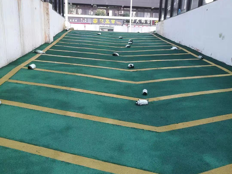 無震動(dòng)止滑坡道是一種新型的車庫坡道防滑產(chǎn)品,其材料是一種雙組分、反應(yīng)硬化型的材料,主要成分是由水性環(huán)氧樹脂與剛玉材料混合而成。施工完成后的坡道,是一個(gè)耐磨性好,構(gòu)造深度大,行車無震動(dòng)的涂層系統(tǒng),達(dá)到行車的舒適和防滑效果。